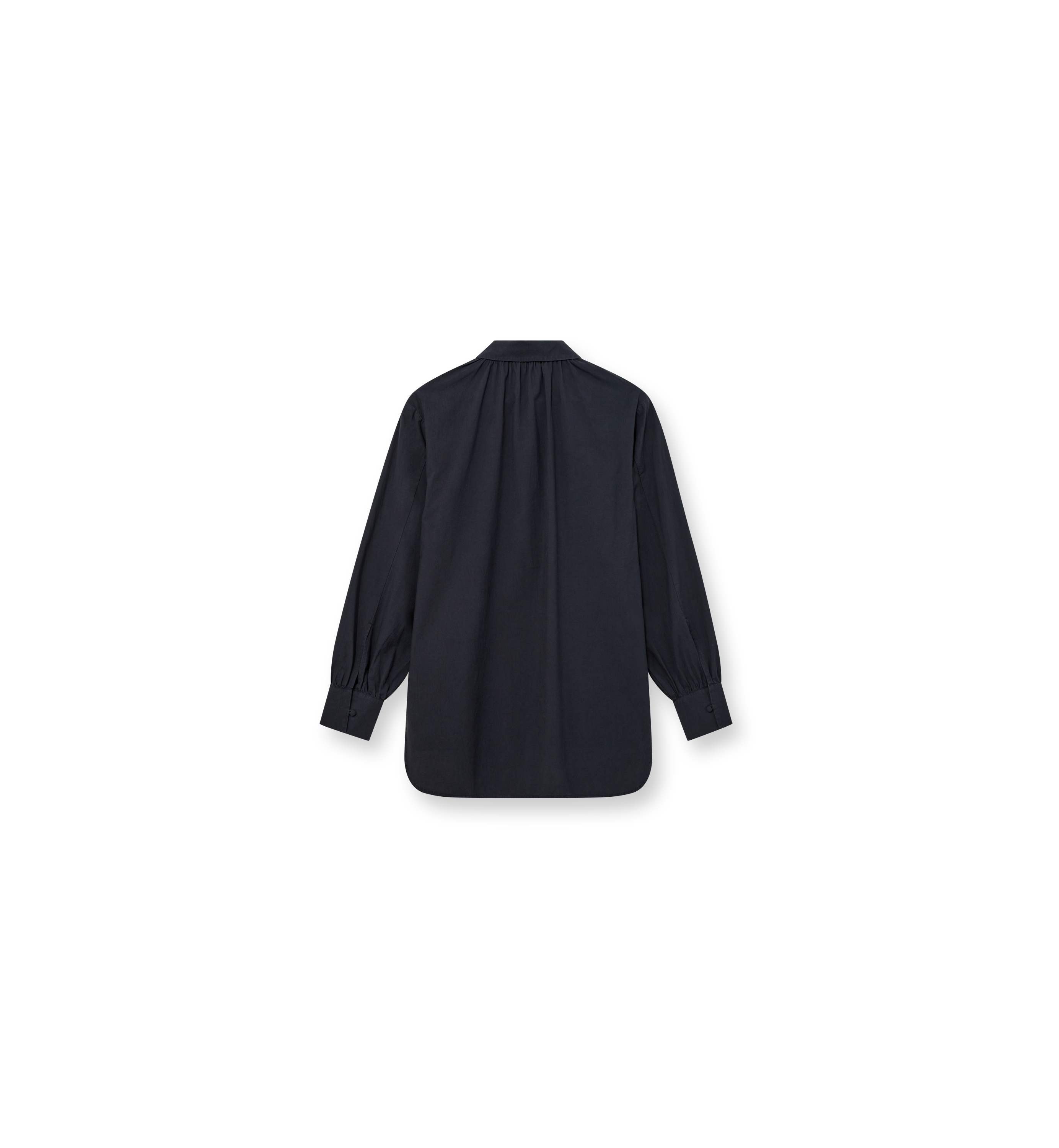 Super soft shirt with a relaxed shape and garment-washed finish. Feminine pleats and a rounded collar bring softness to the structured feel. Curved side slits and buttoned cuffs finish the look.